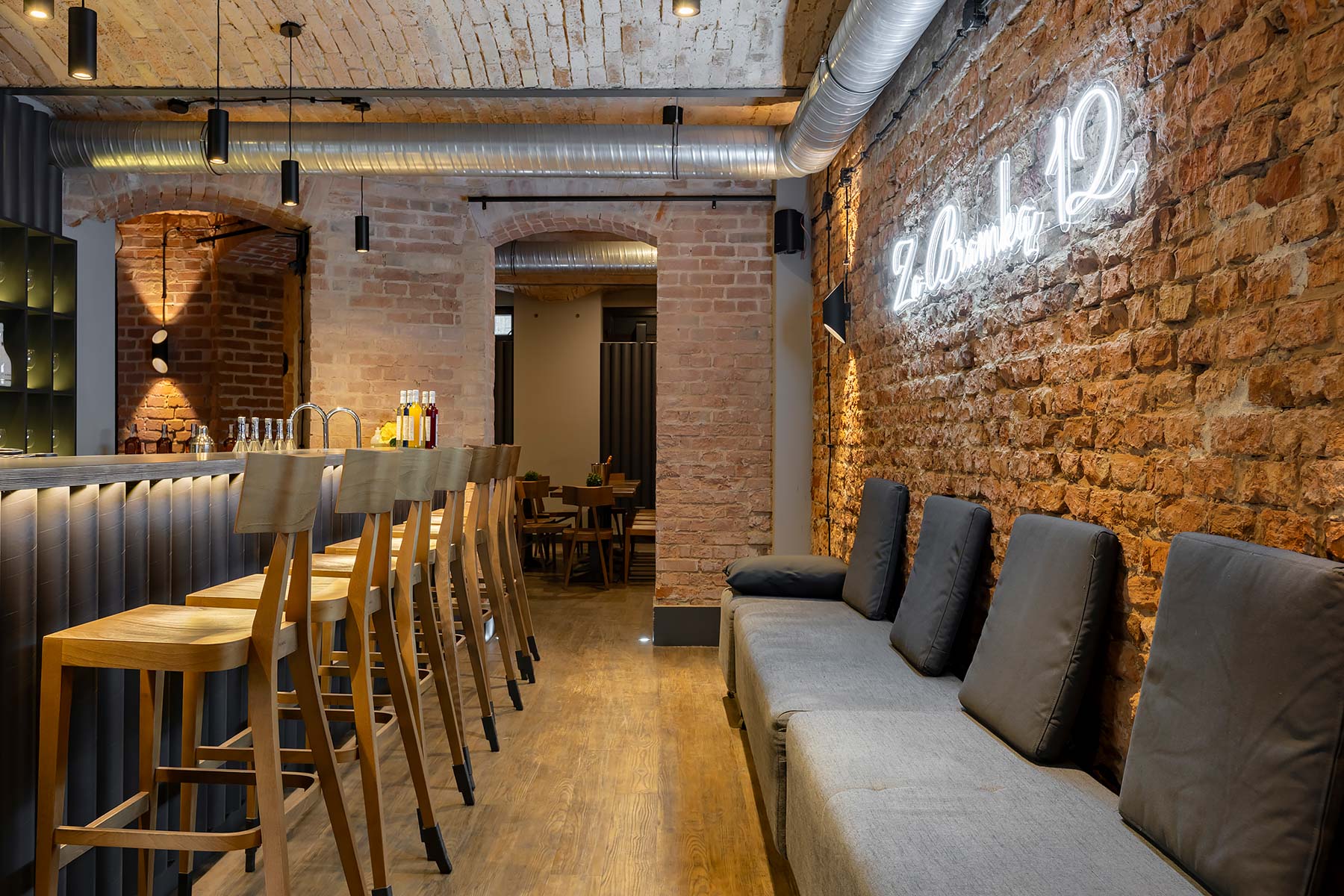 Apartament Za Bramką 12 – Prestige II to unikalny loftowy wystrój, w którym na ponad 130 metrowej przestrzeni zoorganizujesz wymarzony event. Lokal wynajmowany jest do 30 osób bez możliwości noclegu, znajduje się w nim 65 calowy TV, nagłośnienie, bar, dance floor, wyposażona kuchnia oraz 2 toalety. Stoły mogą pomieścić do 30 miejsc. Dodatkowe miejsca zapewniają również hokery przy barze.