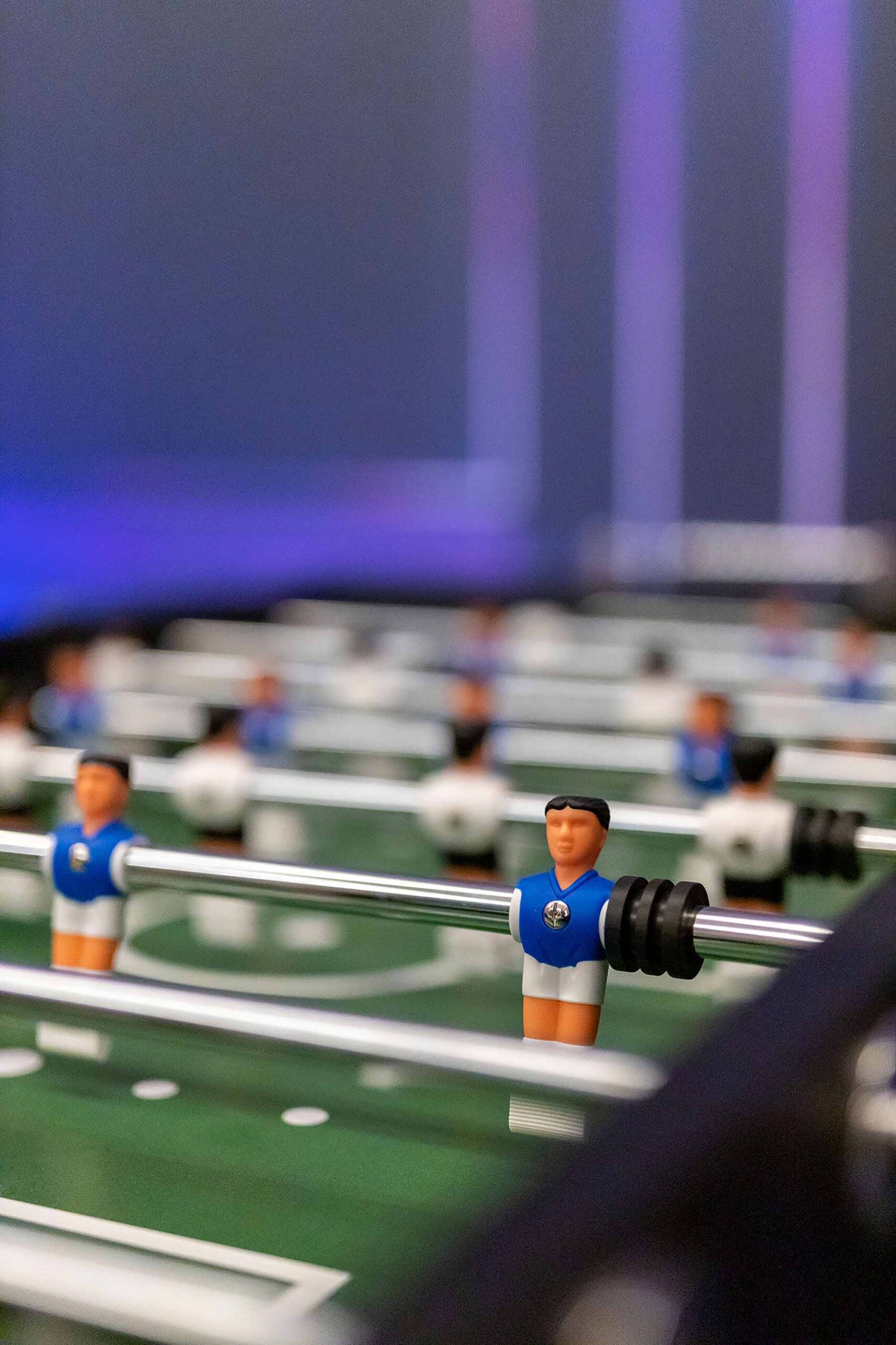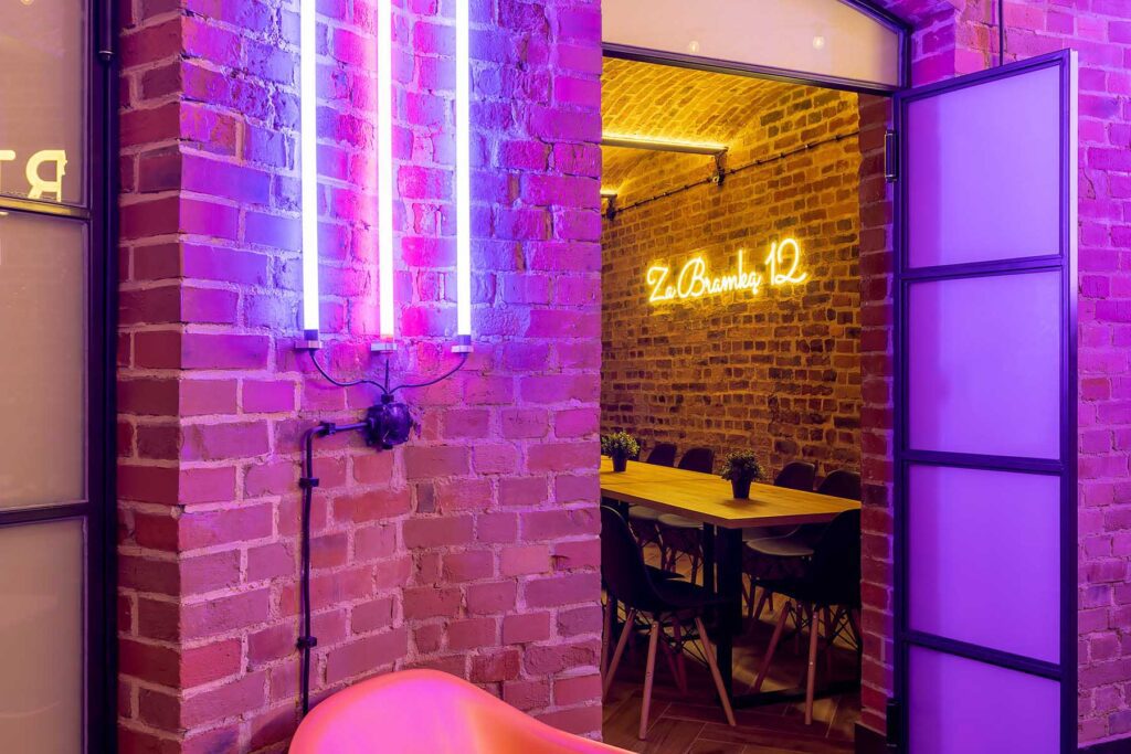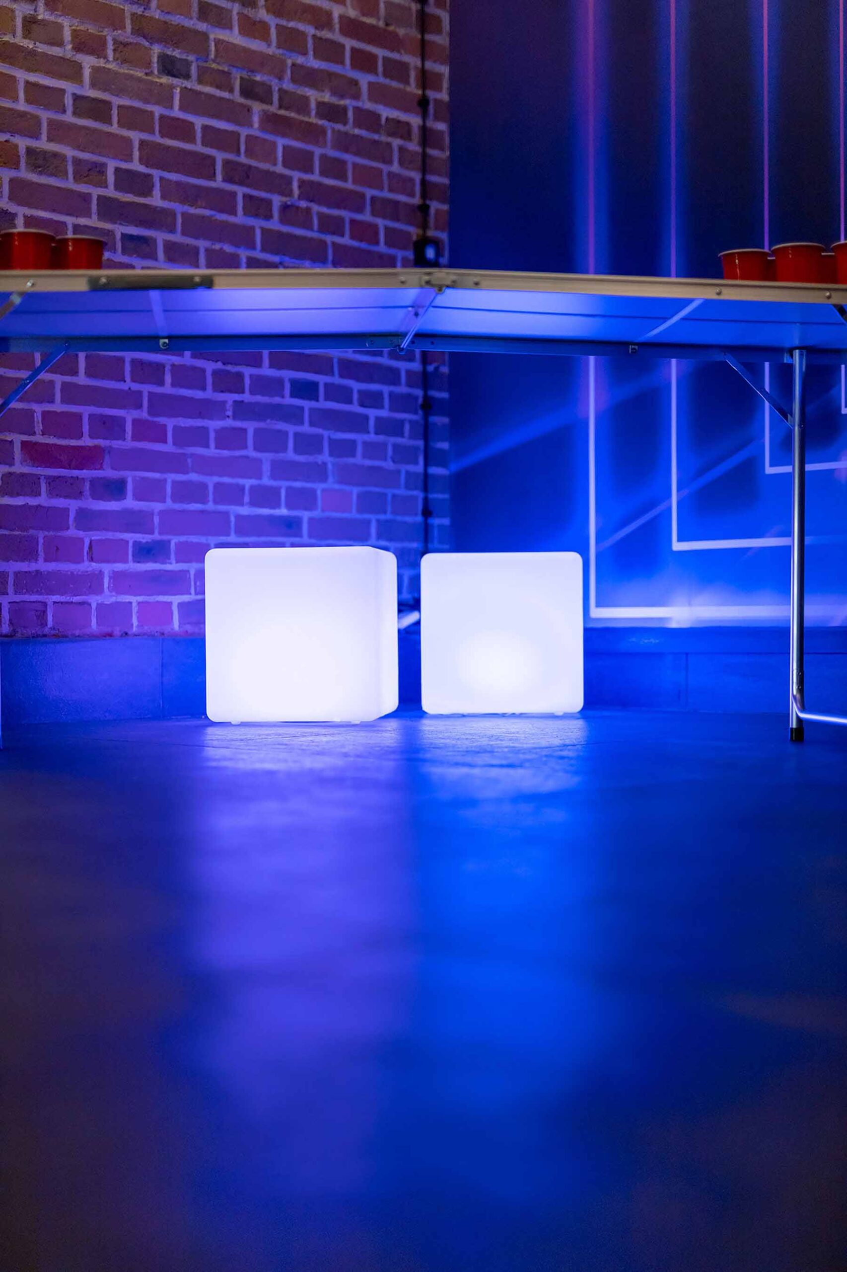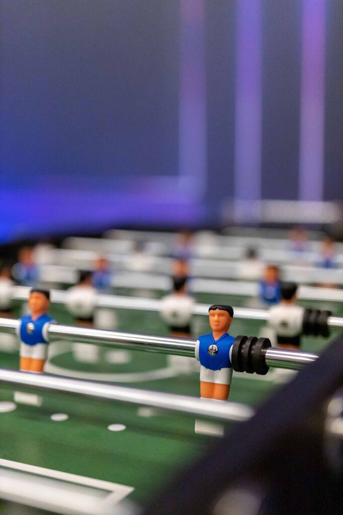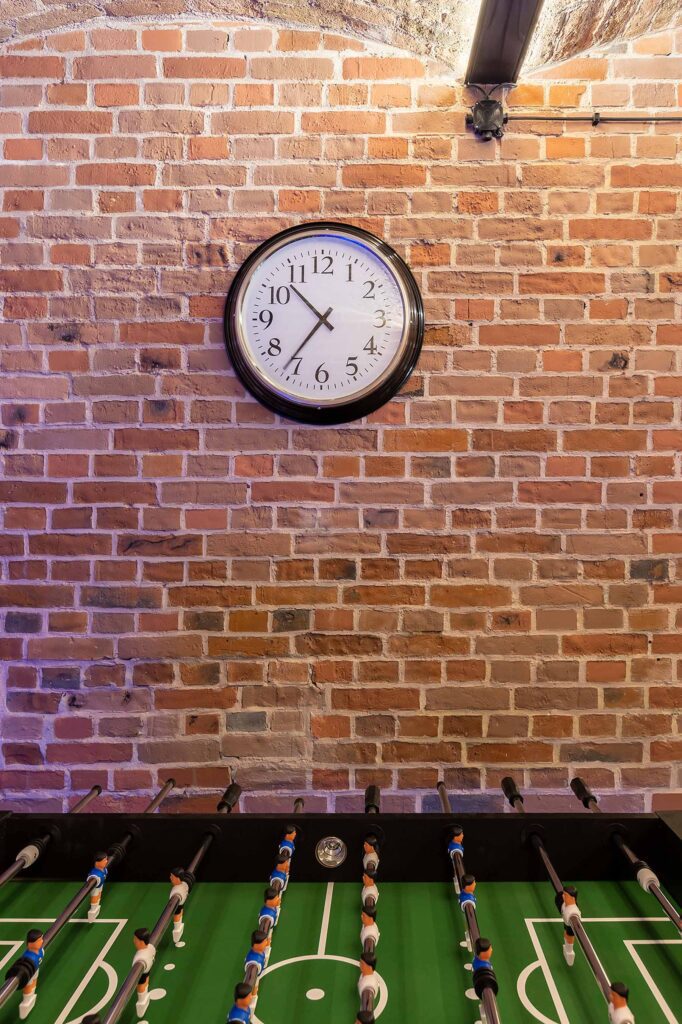 Kolejne pomieszczenie to Strefa Gier, gdzie znajduje się Beer Pong, na stole do beer ponga zostawiamy kubki oraz piłeczki do gry. W Strefie Gier znajdują się również piłkarzyki, wieszaki na ubrania, neonowa tapeta oraz kostki ledowe.