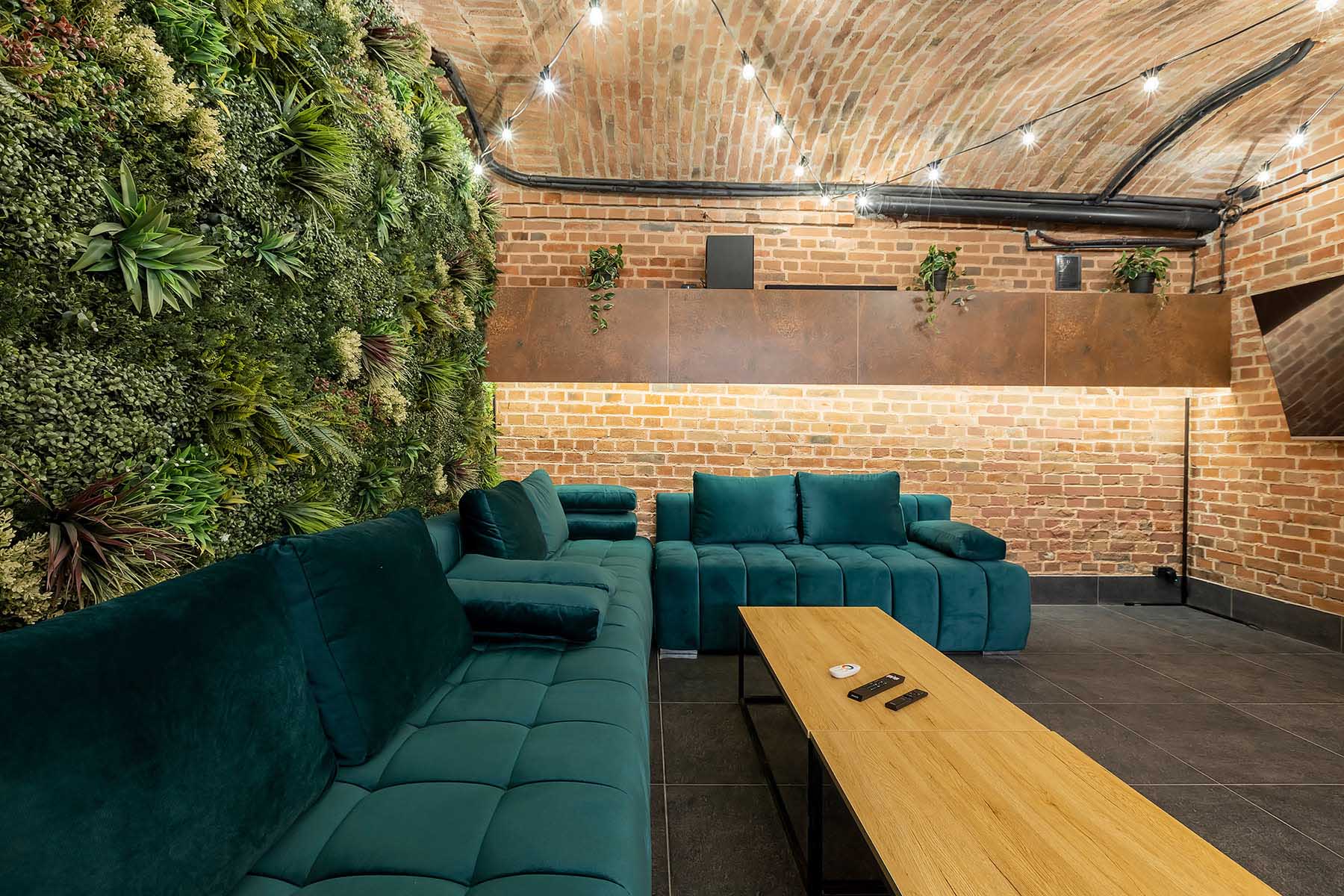 Stoły z możliwością pomieszczenia 30 osób. To w tym miejscu możecie stworzyć konferencje, spożywać posiłki, wznieść toast, czy też obejrzeć wspólnie mecz. W tej części znajduje się 65′ Smart TV z dostępem do internetu.