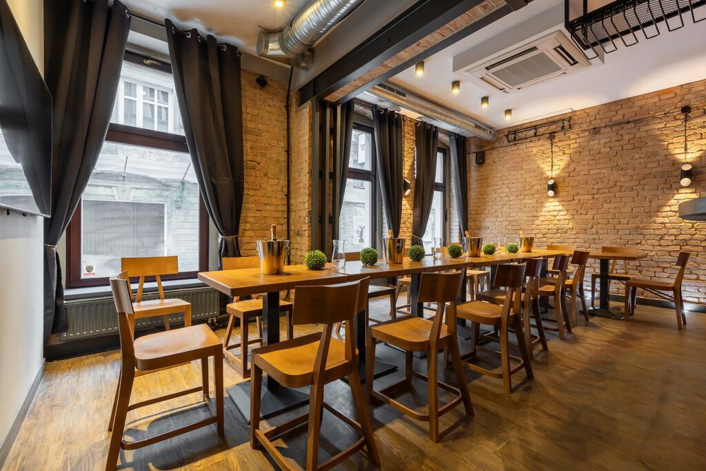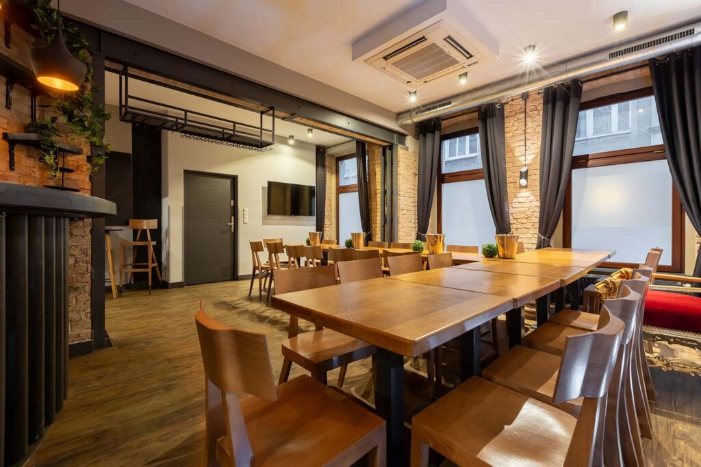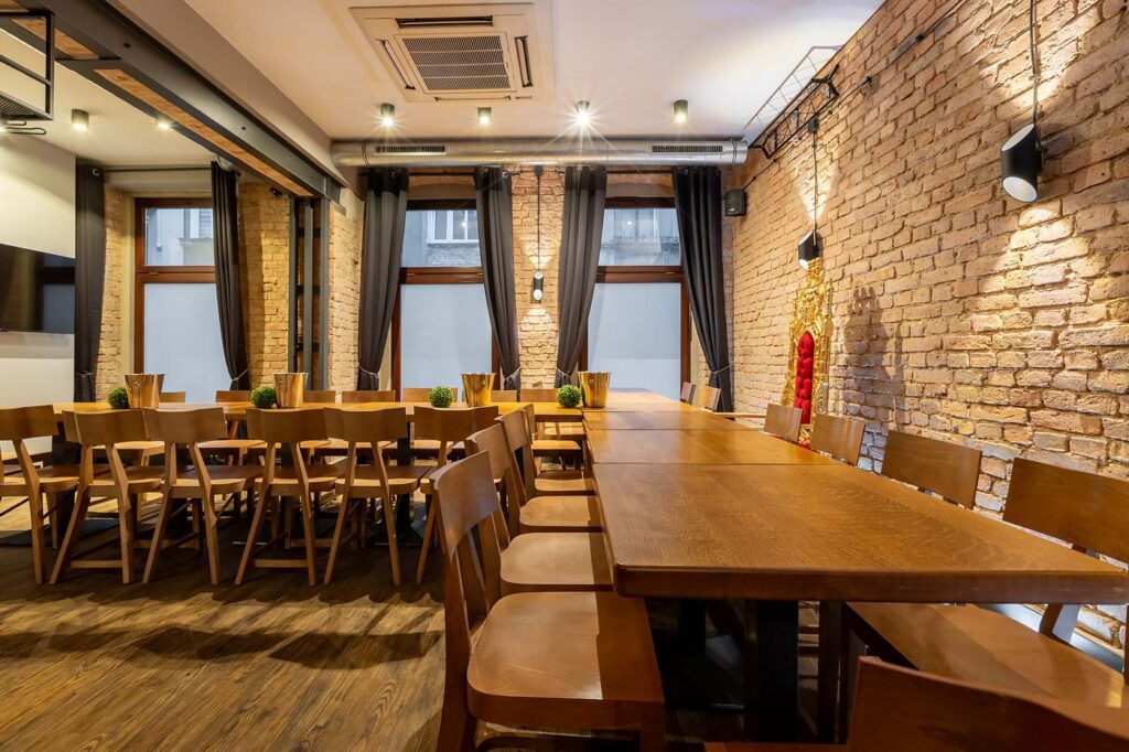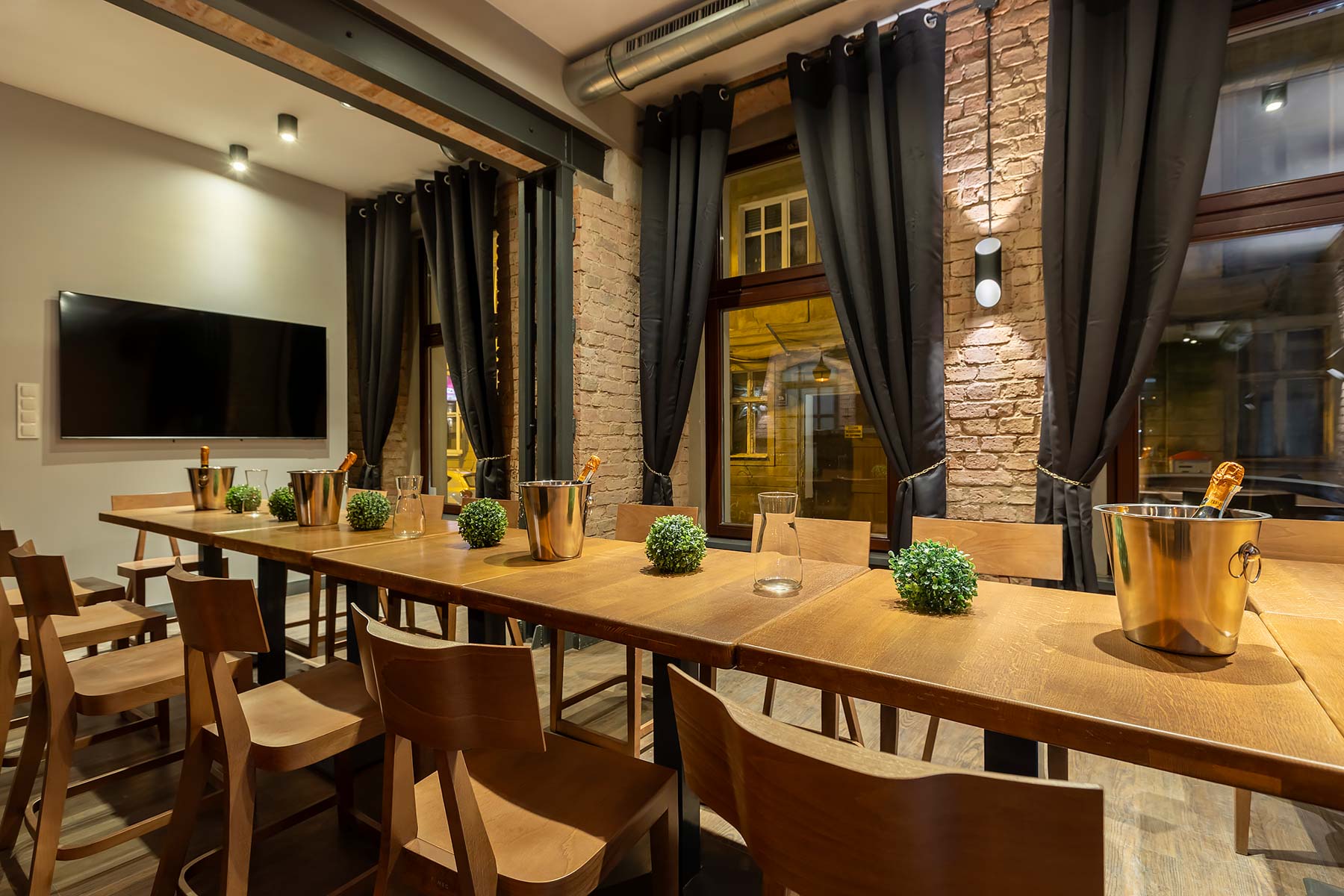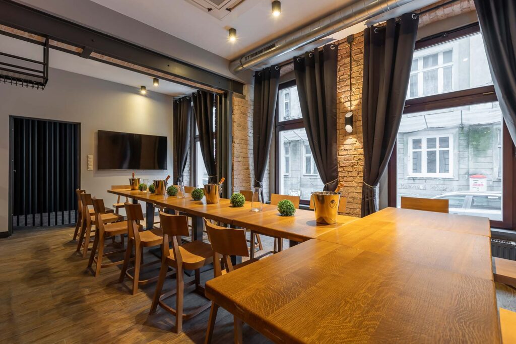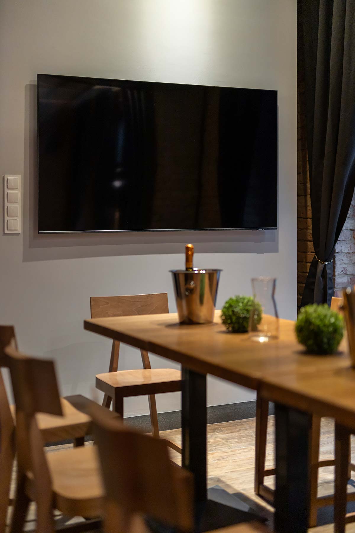 Stoły z możliwością pomieszczenia 30 osób. To w tym miejscu możecie stworzyć konferencje, spożywać posiłki, wznieść toast, czy też obejrzeć wspólnie mecz. W tej części znajduje się 65′ Smart TV z dostępem do internetu.