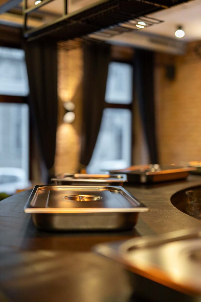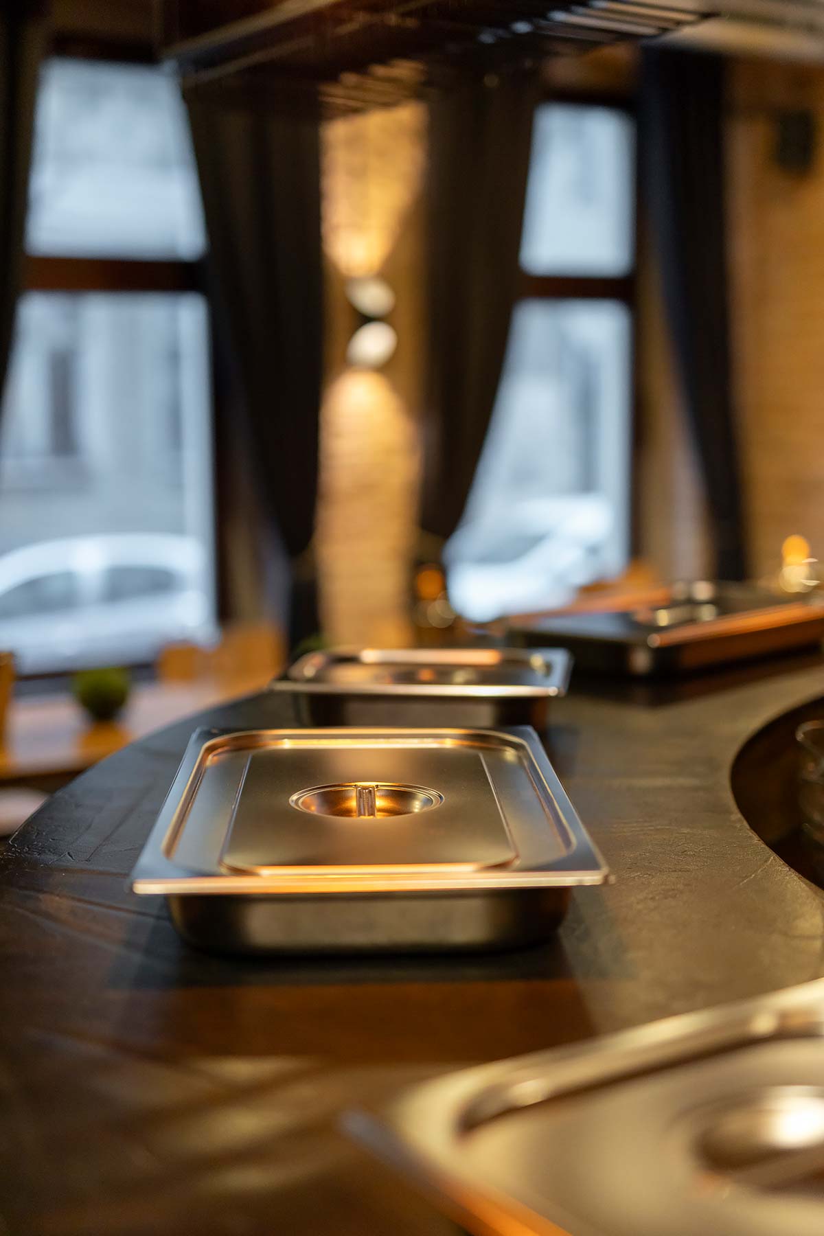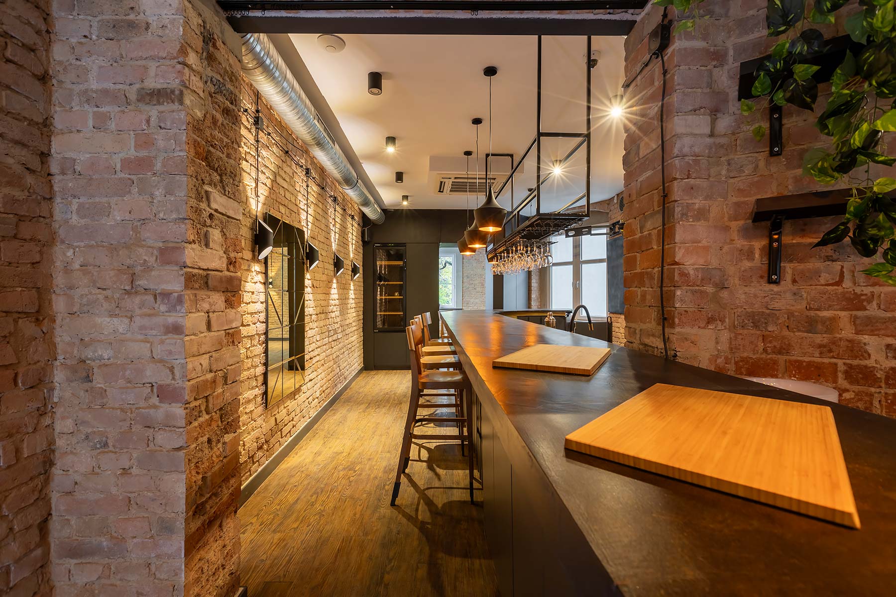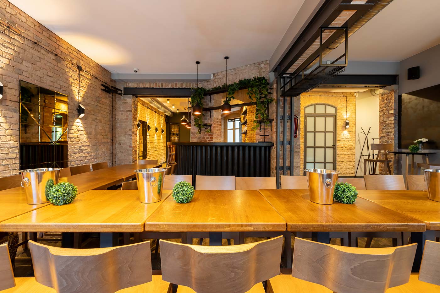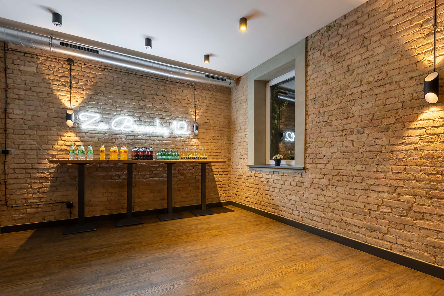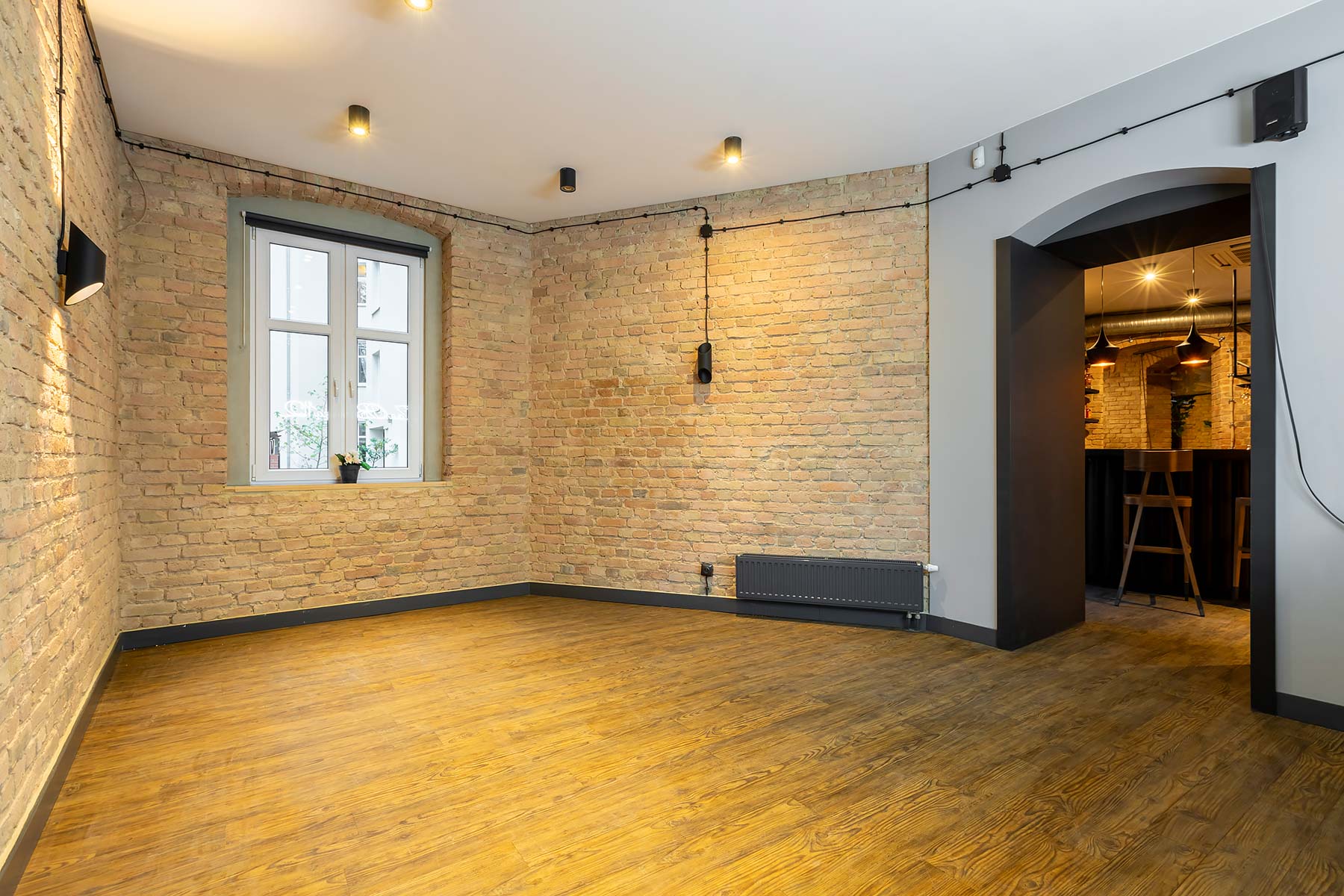 W lokalu znajduje się część jadalna w której można zoorganizować własne lub zamówione jedzenie z cateringu. Na czas wynajmu zostawiamy bemary, w których można umieścić ciepłe posiłki. Duży barowy blat umożliwia też pozostawienie zimnego bufetu, słodkości czy też różnego rodzaju napoi.