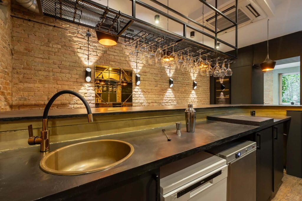 W centralnym punkcie lokalu znajduje się ogromny dobrze wyposażony bar z zastawą na 30 osób. Do dyspozycji naszych Gości oddajemy naczynia, sztućce, szklanki, kieliszki itp. W tym miejscu można przygotowywać najlepsze drinki w mieście 😉